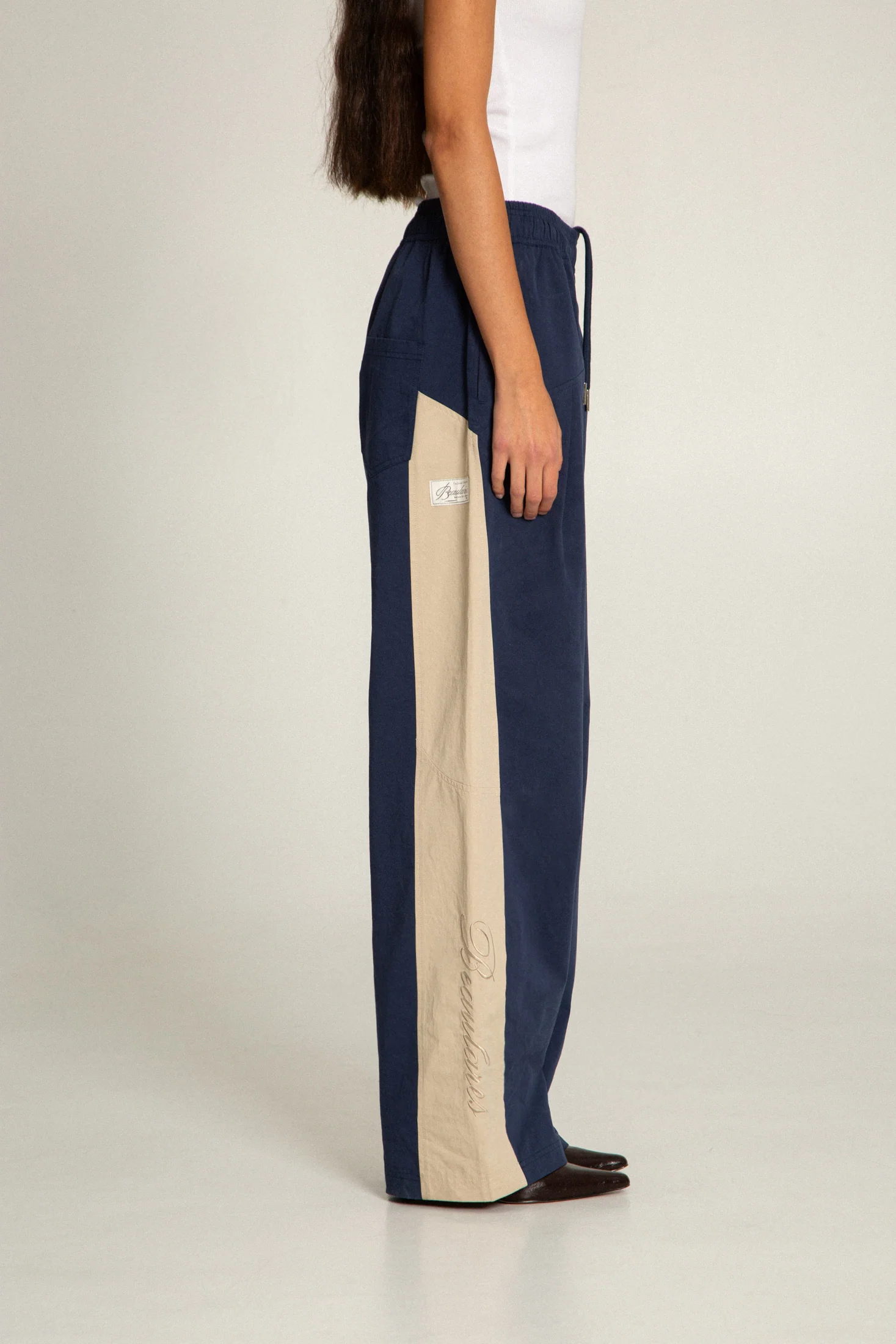 Wide-leg tracksuit pants with colour-block design. Made from premium cotton and finished with Beaularés embroidery along the lower leg and a tailored edition external label. Perfect when worn as a set with the Momentum Track Jacket.