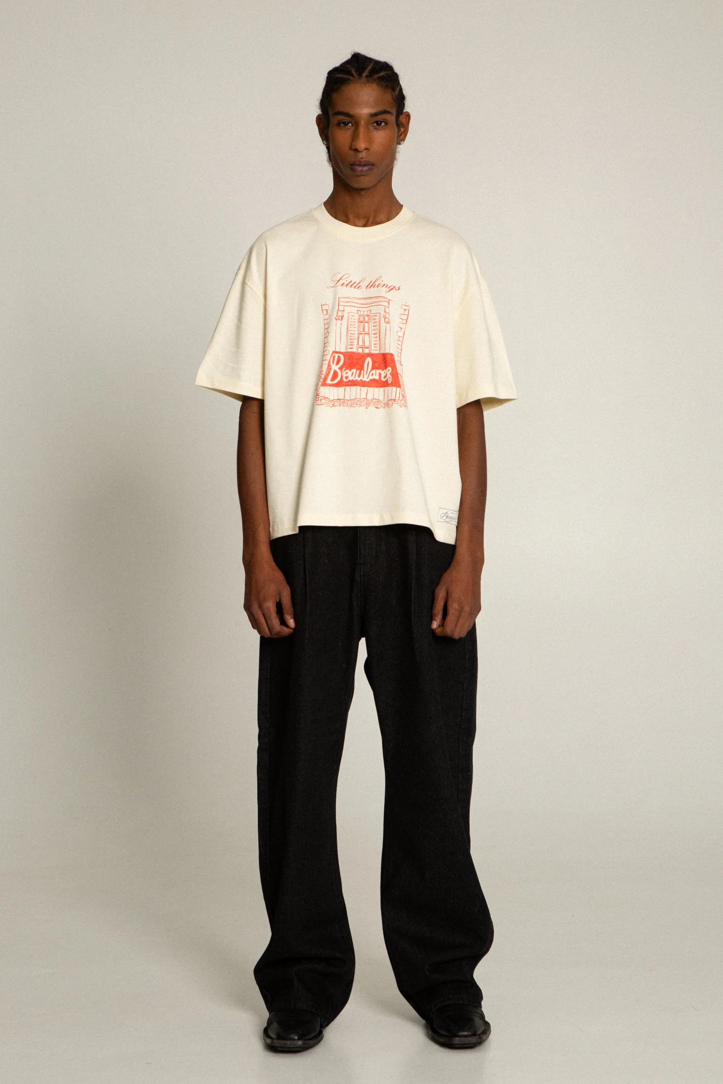 Our hand-illustrated t-shirts are crafted from a substantial 310gsm, 100% premium cotton. We found this to be the perfect weight for a comfortable yet structured finish. It features a subtle crop, a boxy sleeve for a relaxed silhouette, and an extended crew neck. Each piece is part of an exclusive artist collaboration, paying homage to the little things in life.